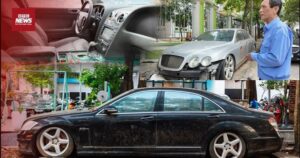 Hình ảnh những chiếc xe sang trọng như Bentley, Mercedes nằm phơi nắng mưa trên...