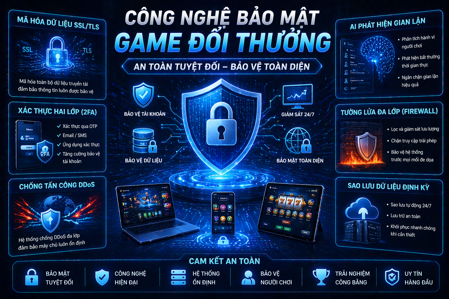 Trong hệ sinh thái game online hiện đại, bảo mật luôn là yếu tố quan trọng hàng đầu. Khi lượng người chơi ngày càng tăng và các giao dịch trực tuyến diễn ra liên tục, việc đảm bảo an toàn dữ liệu, tài khoản và thông tin cá nhân trở thành ưu tiên bắt buộc của mọi nền tảng.