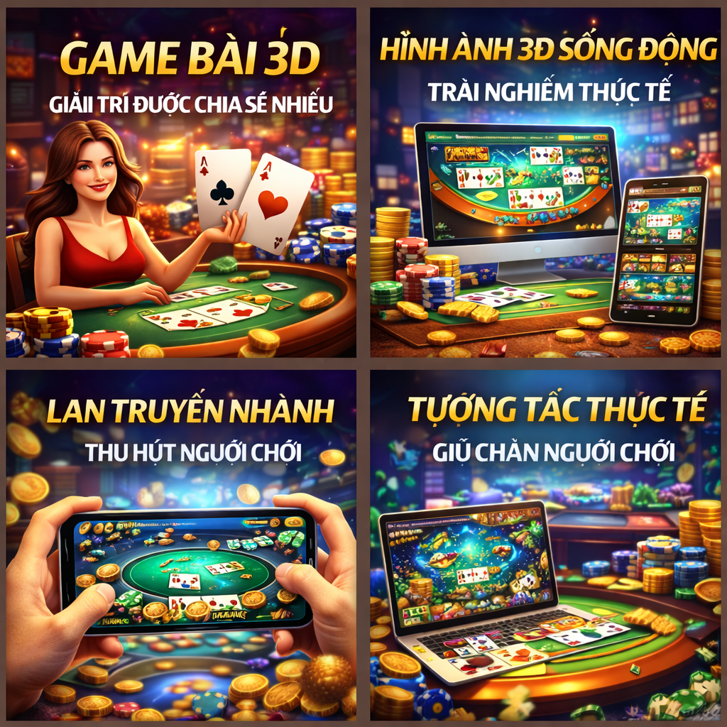 Game bài 3D đang dần trở thành xu hướng nhờ sự kết hợp giữa hình ảnh chân thực, nhịp chơi linh hoạt và trải nghiệm tương tác cao. Đây là yếu tố giúp loại hình này được chia sẻ nhiều và thu hút sự quan tâm lớn từ cộng đồng.