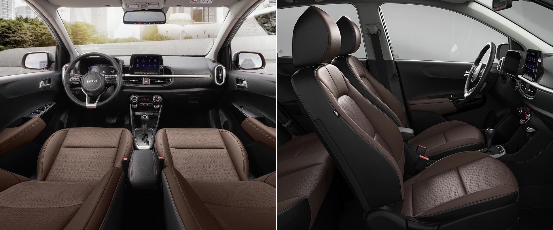 Không gian cabin của Kia Morning 2025 đã được cải tiến đáng kể để mang lại trải nghiệm thoải mái, tiện lợi hơn cho người dùng. Các vật liệu nội thất chọn lọc kỹ càng đi cùng thiết kế gọn gàng giúp mở rộng không gian sử dụng dù kích thước tổng thể vẫn giữ nguyên. Đặc biệt, hệ thống công nghệ thông tin giải trí được đầu tư mạnh tạo nên điểm nhấn thu hút.